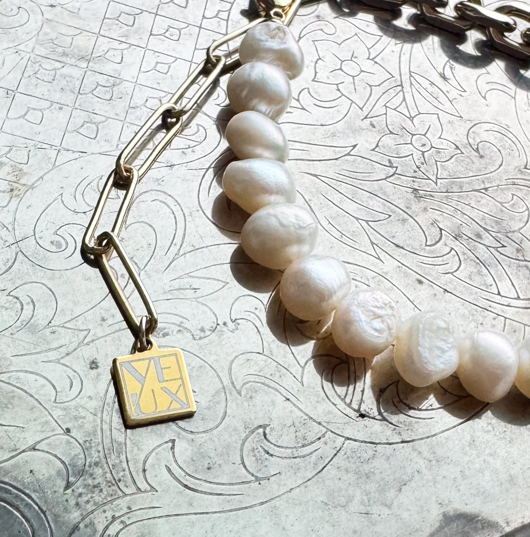 ひねりのあるチェーンの形は甘さは控えめでも女性らしく、個性を引き立ててくれます。