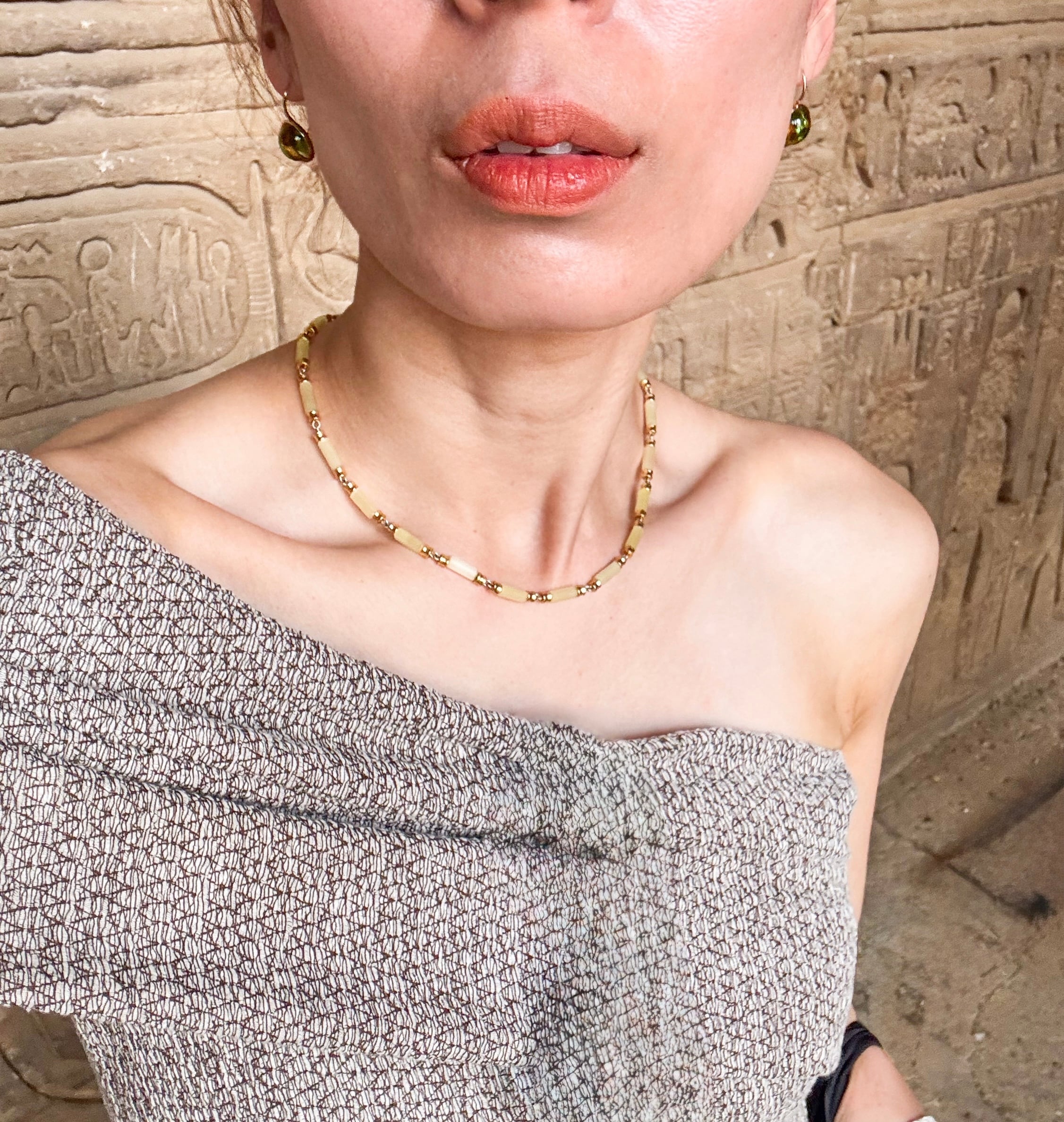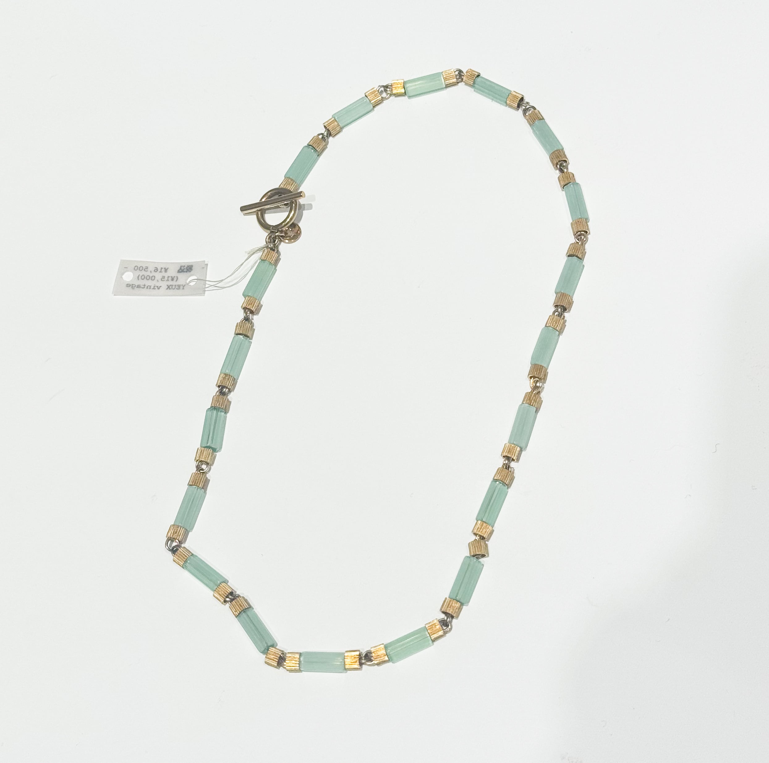 フランス製のスフレガラスの淡い色が上品な大人のかわいさを演出するネックレスです。