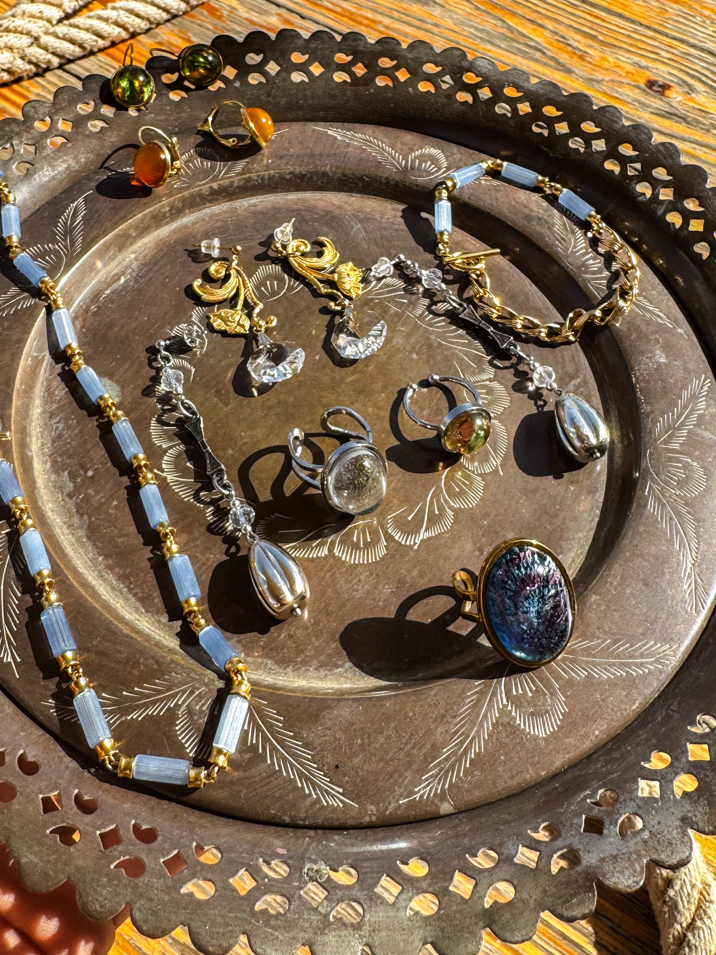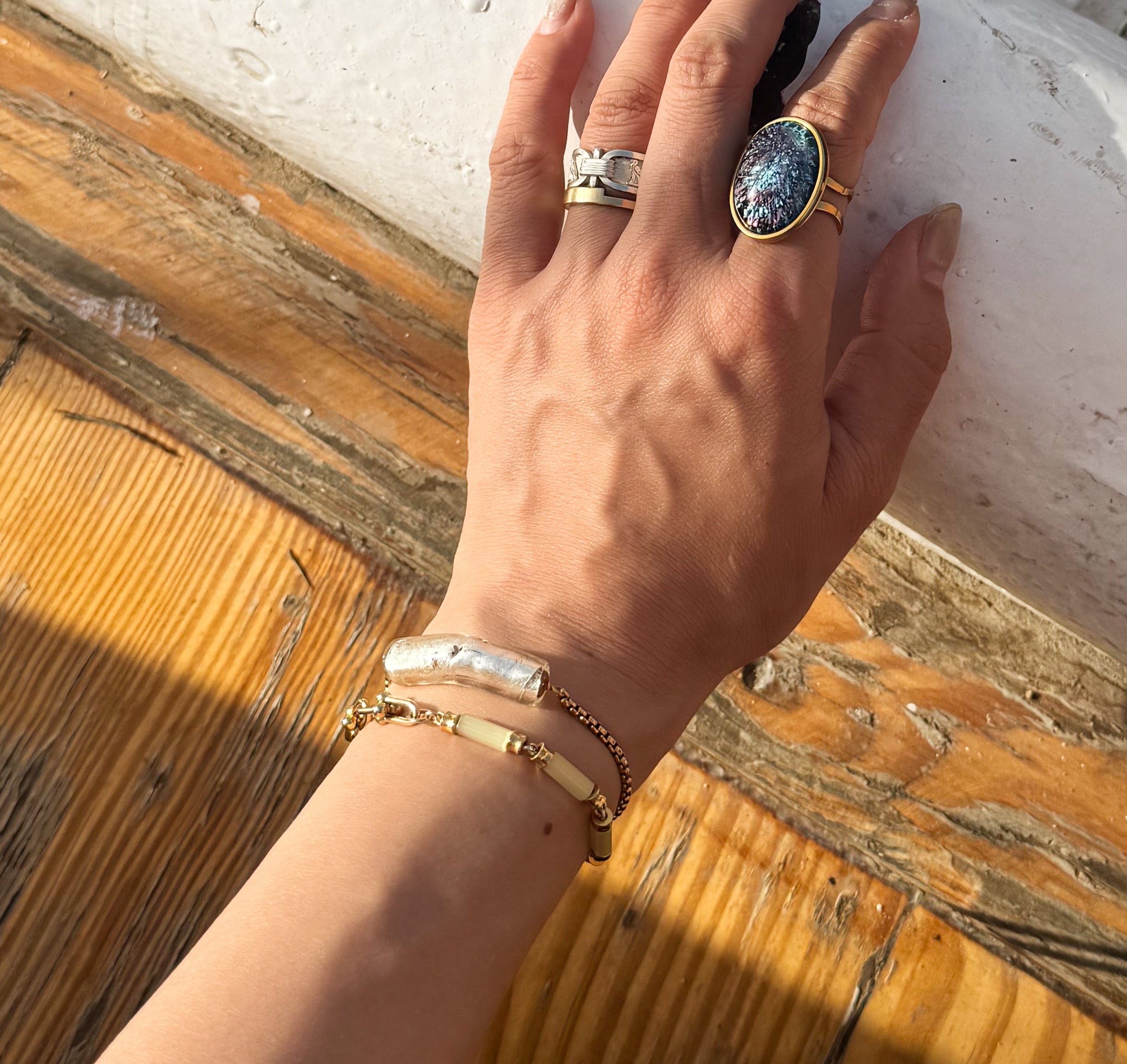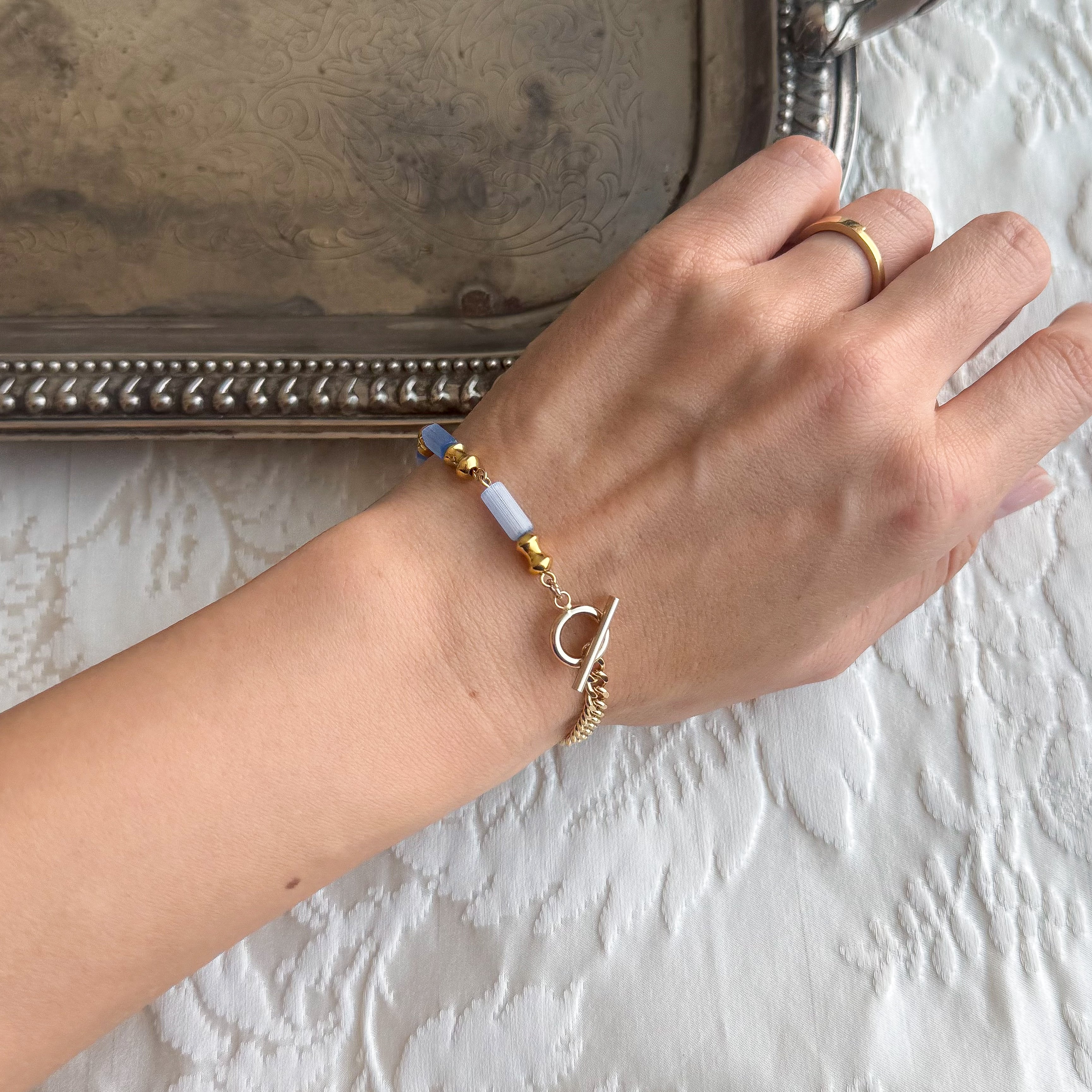フランス製のスフレガラスの淡い色が上品な大人のかわいさを演出するブレスレットです。