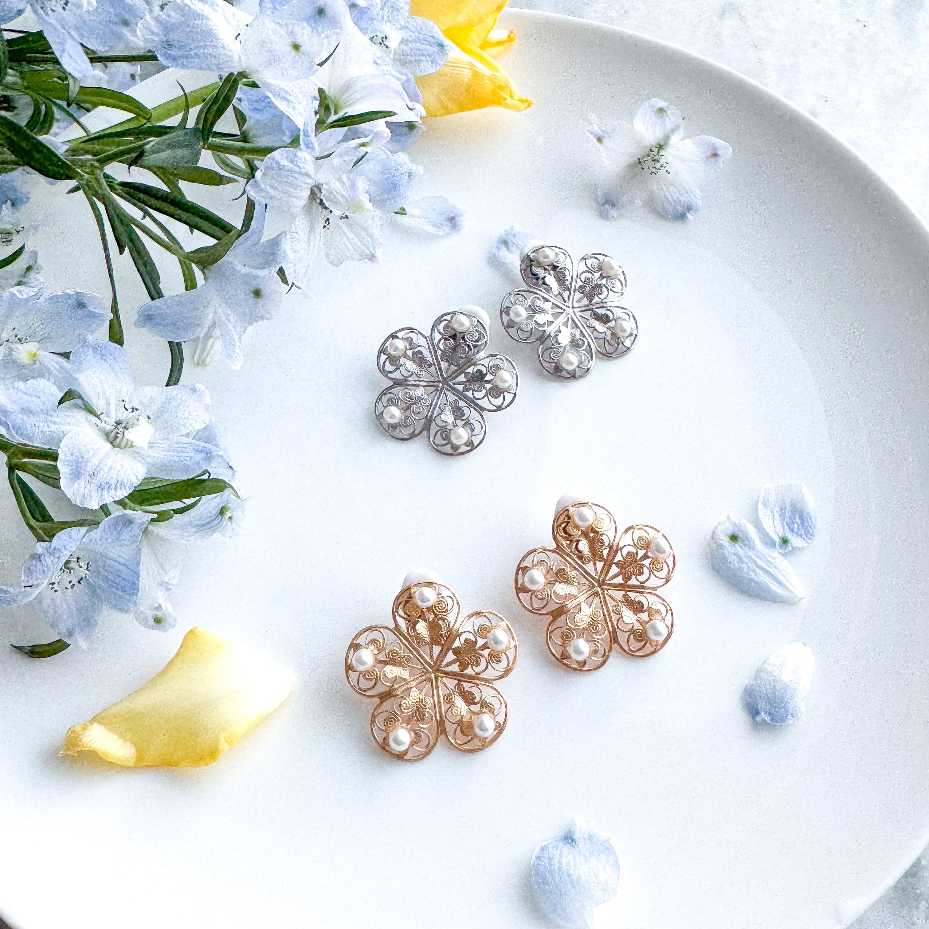 雪の結晶たちが輝きながら冬の夜に空を舞うような姿をジュエリーにお飛び込んだデザインです。