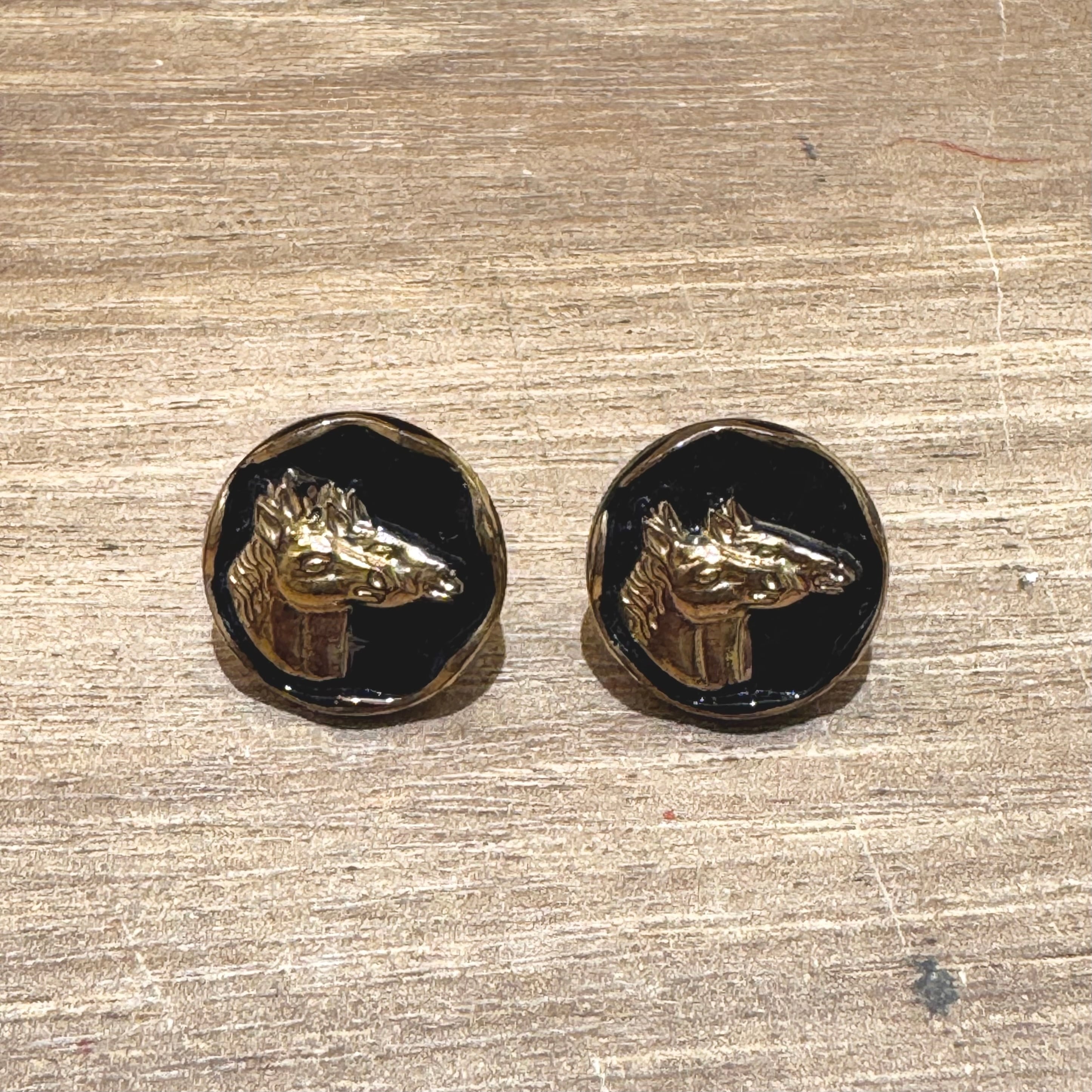 真っ黒いガラスに凹凸で表現された写実的な2頭の馬が印象的なカボション。